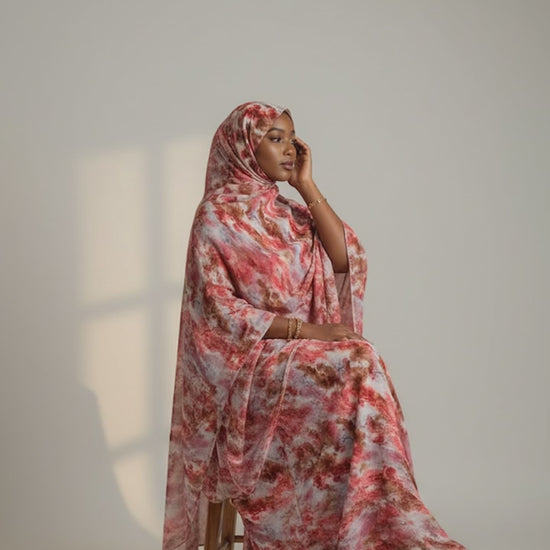 Warm and nurturing, the Rahma Dera features a soft rose-pink base layered with gentle, organic patterns. The colour and drape evoke tenderness and grace, making it ideal for intimate gatherings and quiet moments during Ramadhan.